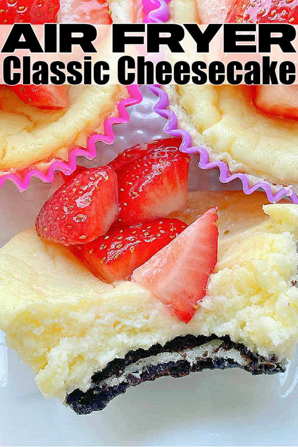 I classify these Air Fryer Cheesecakes as regular cheesecake. They contain white chocolate for flavoring. They have a classic cheesecake flavor but aren’t quite as dense and creamy as New York style. A true, New York cheesecake is super dense and creamy, with just cream cheese, cream or sour cream, eggs, sugar and sometimes lemon juice in its batter. Here’s a terrific recipe for an oven baked classic New York Cheesecake.