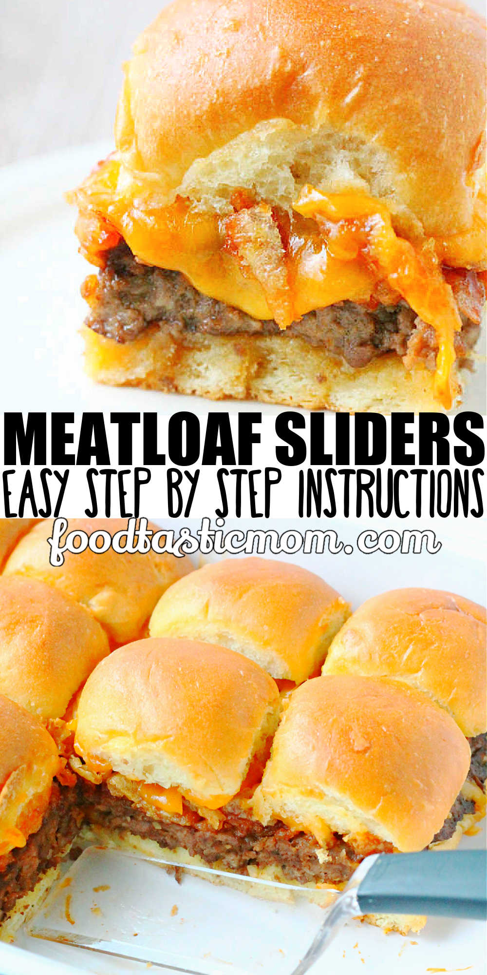 Serve these meatloaf sliders at your next party and everyone will be asking you for the recipe. Made with a unique way of baking the meatloaf seasoned burger and topped with french fried onions, cheddar and a sweet and tangy sauce.