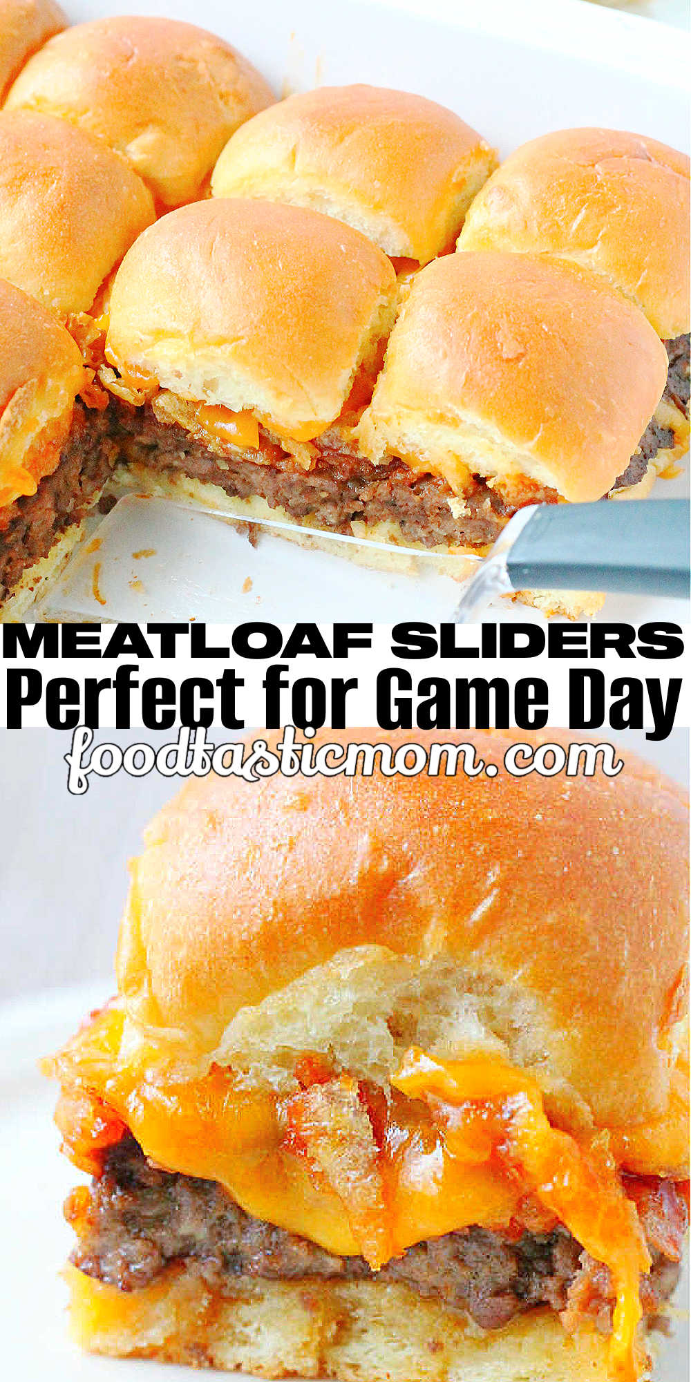 - Slice the slider buns even in half. Use two spatulas to carefully lift the large meatloaf "burger" and place it on the bottom half of the slider buns.