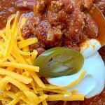 - Serve the chili topped with shredded cheese, sour cream and sliced jalapeño peppers if desired.