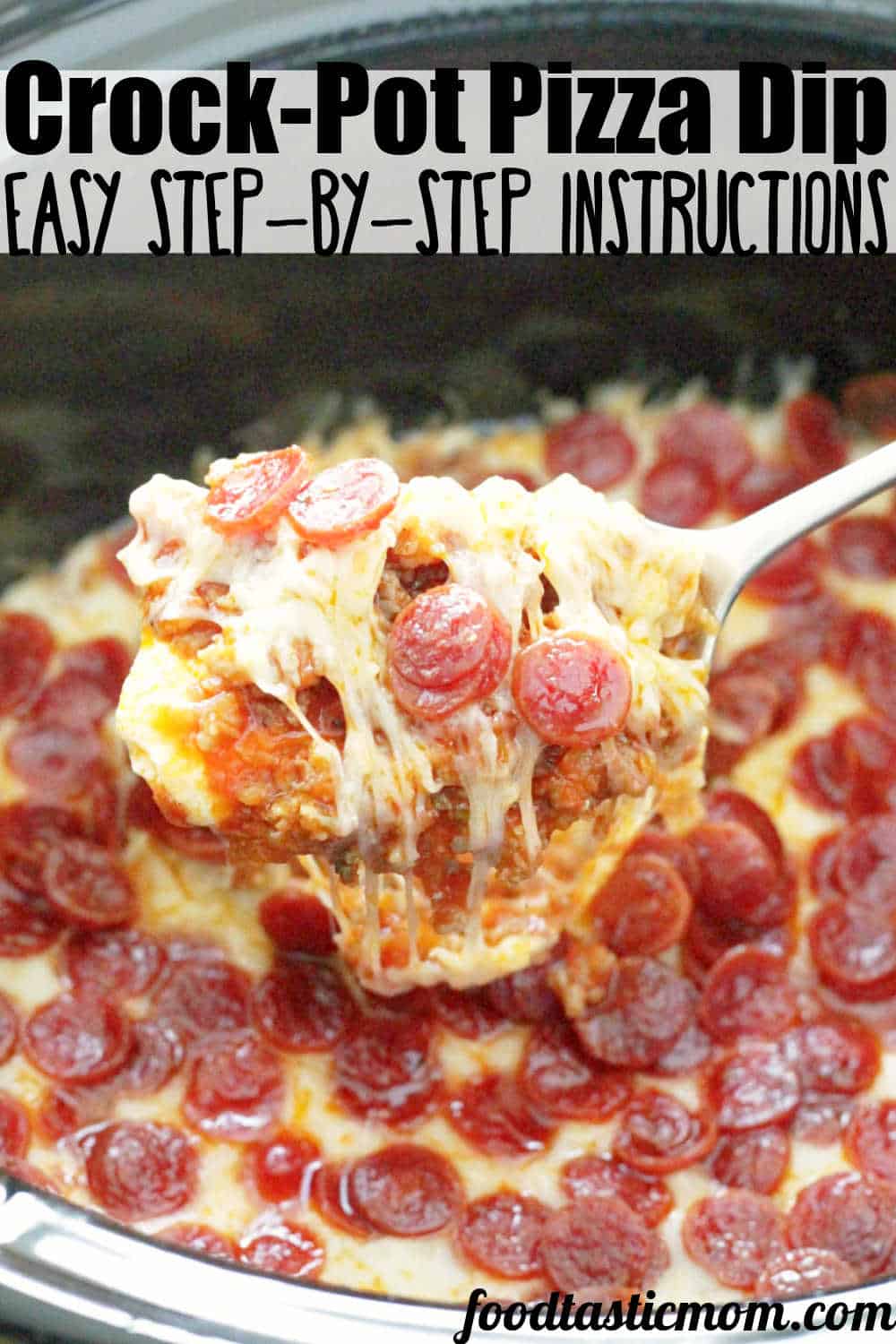 This is an easy cheesy pizza dip recipe that is made for the slow cooker! A perfect appetizer that will be a huge hit at your next gathering.