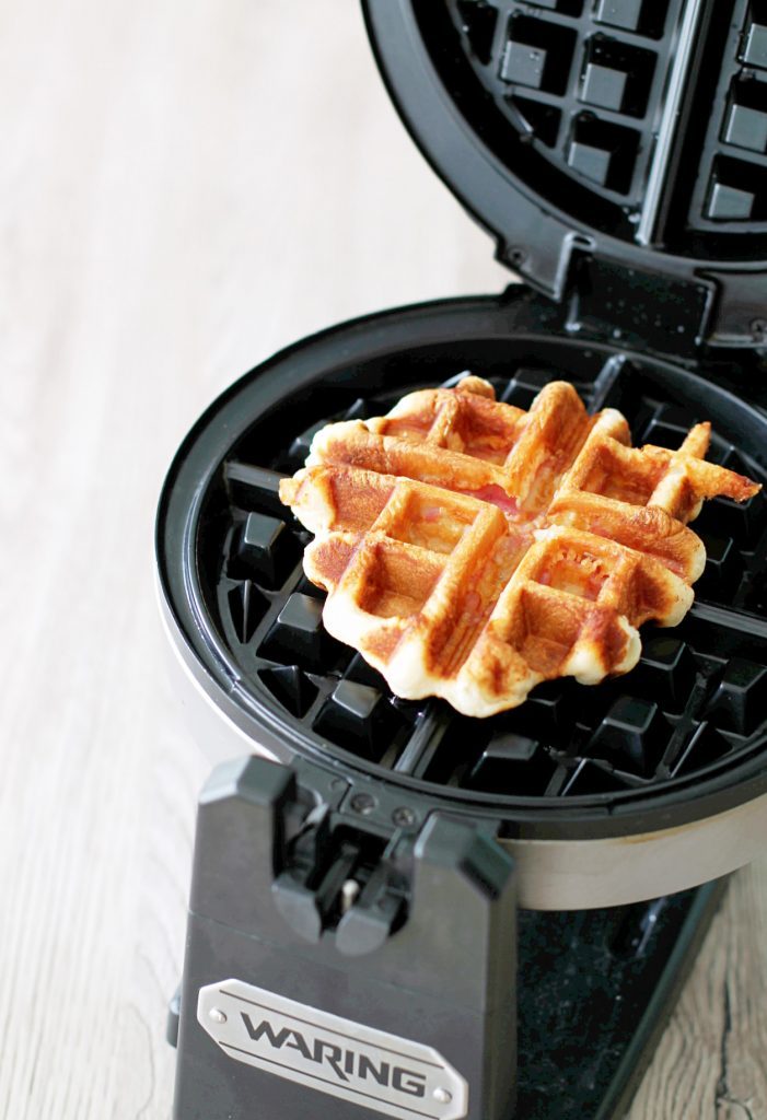 - Preheat a standard waffle iron (mine was on setting "4"). Place a biscuit stromboli in the center (one at a time) and cook as you would a waffle.