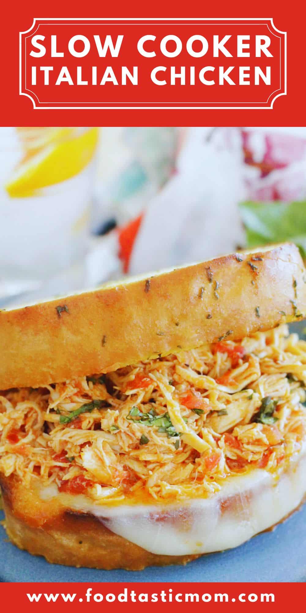These Slow Cooker Italian Chicken Sandwiches have a fresh tomato flavor even when tomatoes aren’t in season. Slow cooked Italian-flavored chicken is piled high on toasty garlic bread with melted Provolone cheese and fresh chopped basil.