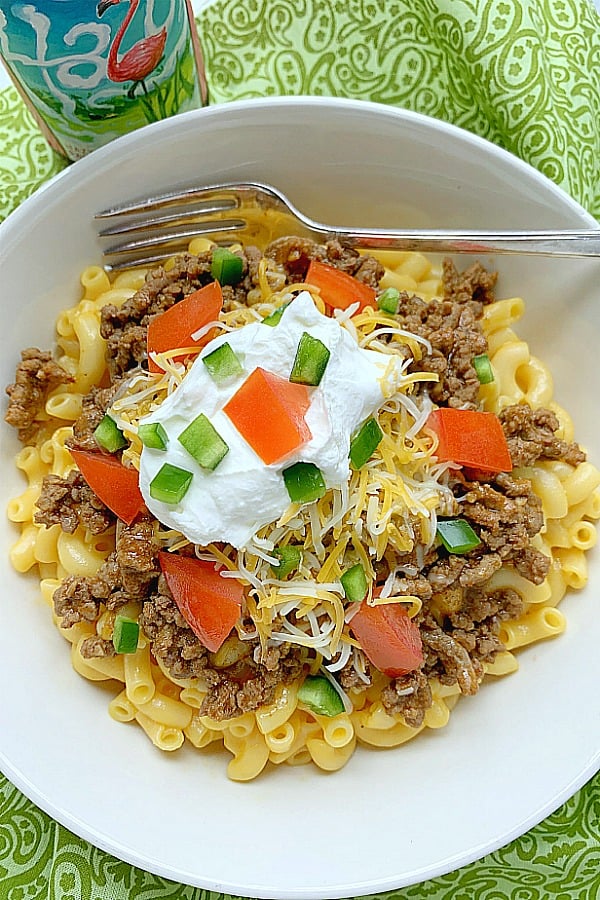Taco Mac and Cheese is simple comfort food that combines two meal time favorites into one delicious dish. Includes a recipe for oven baked mac and cheese.